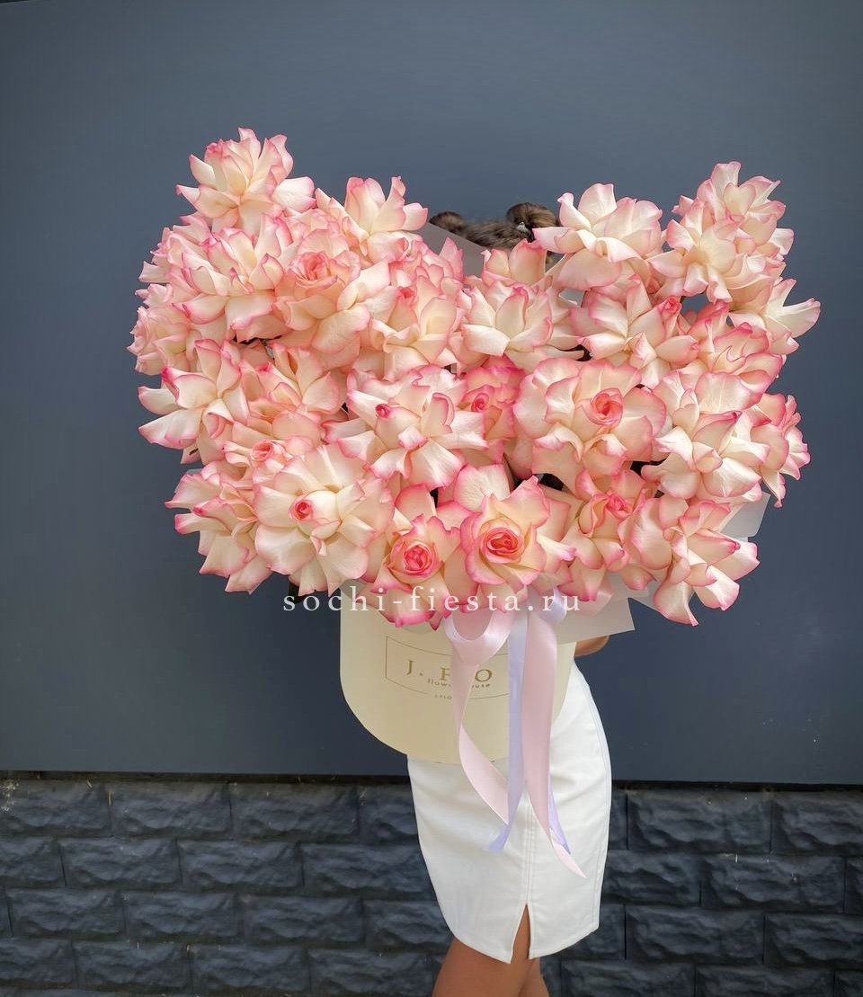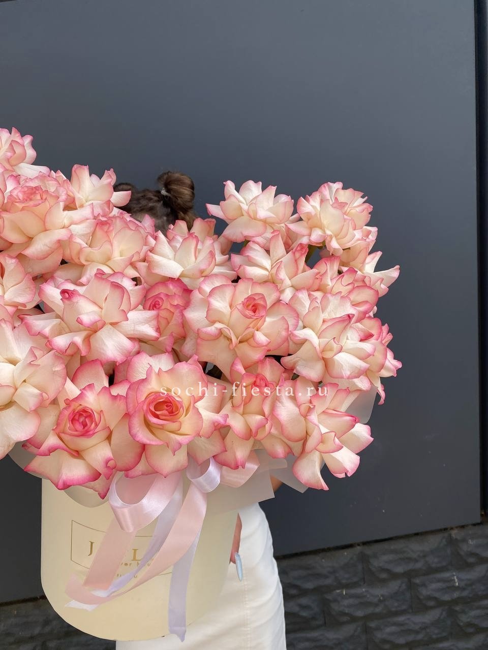 Для заказа товара "31 французская роза Джумилия в боксе" с доставкой в Калуге нажмите в корзину