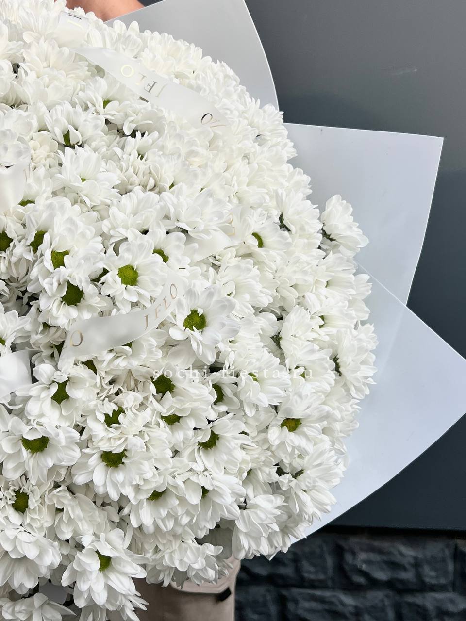 роскошный букет из 101 хризантемы.