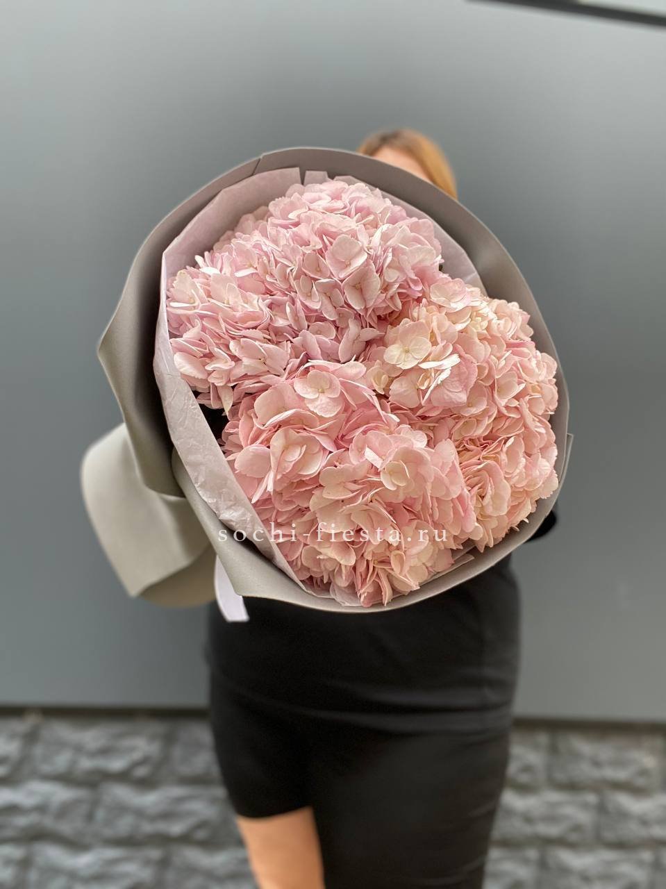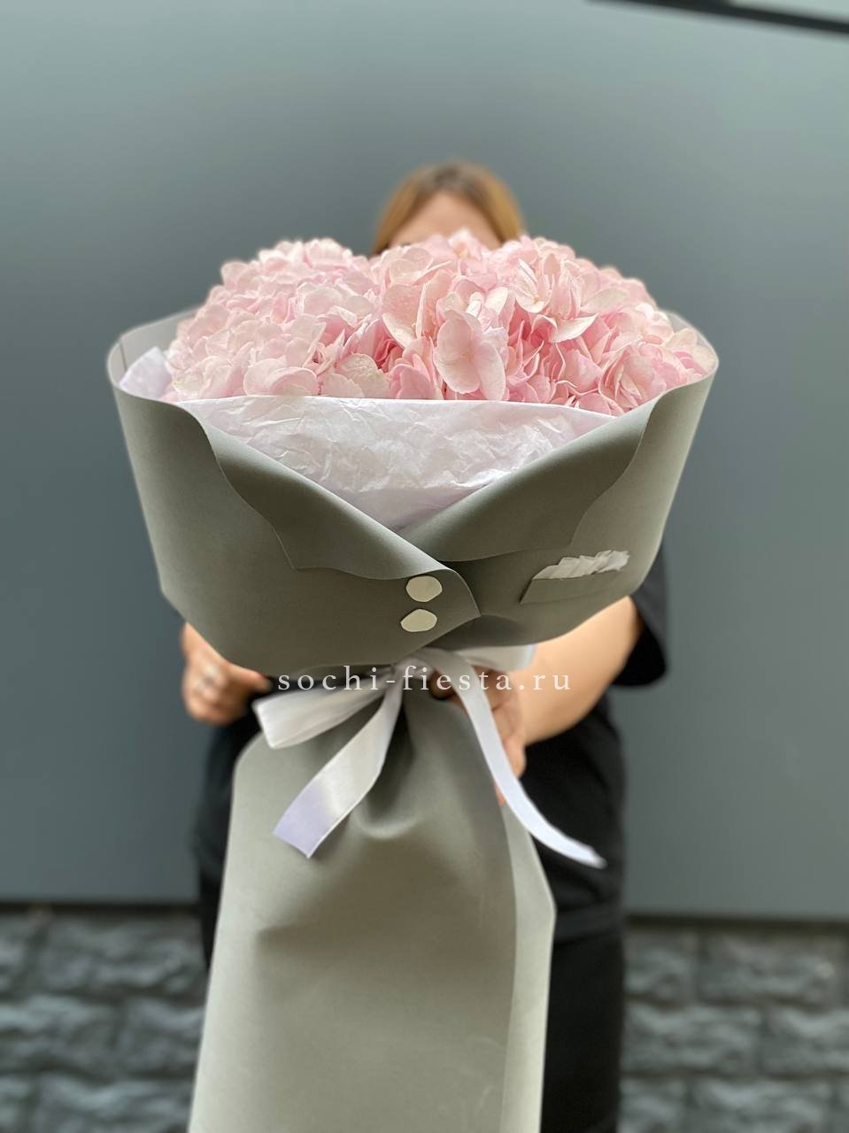 гортензия - 3 шт., лента, дизайнерская упаковка.