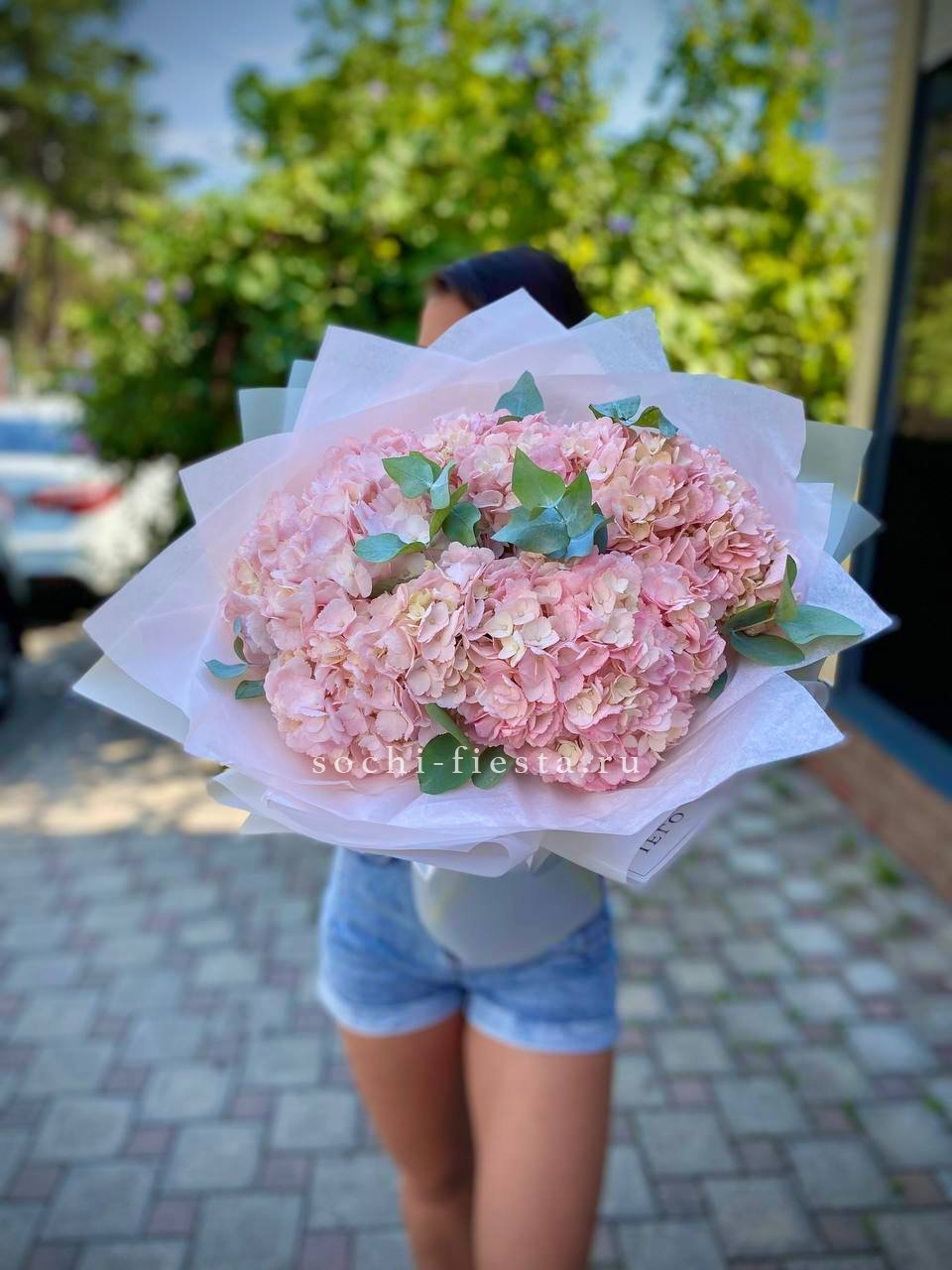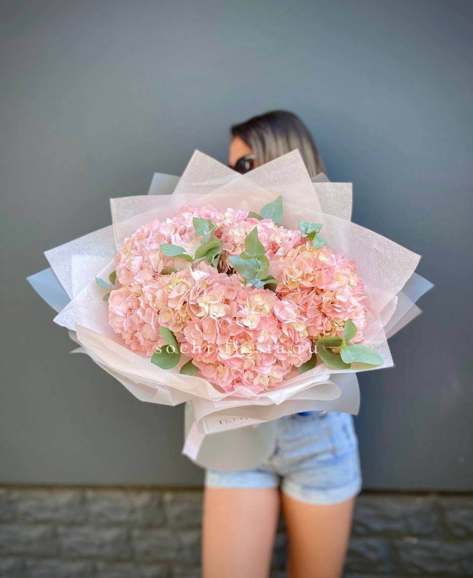 гортензия (розовая, голубая) - 7 шт., лента, дизайнерская упаковка.