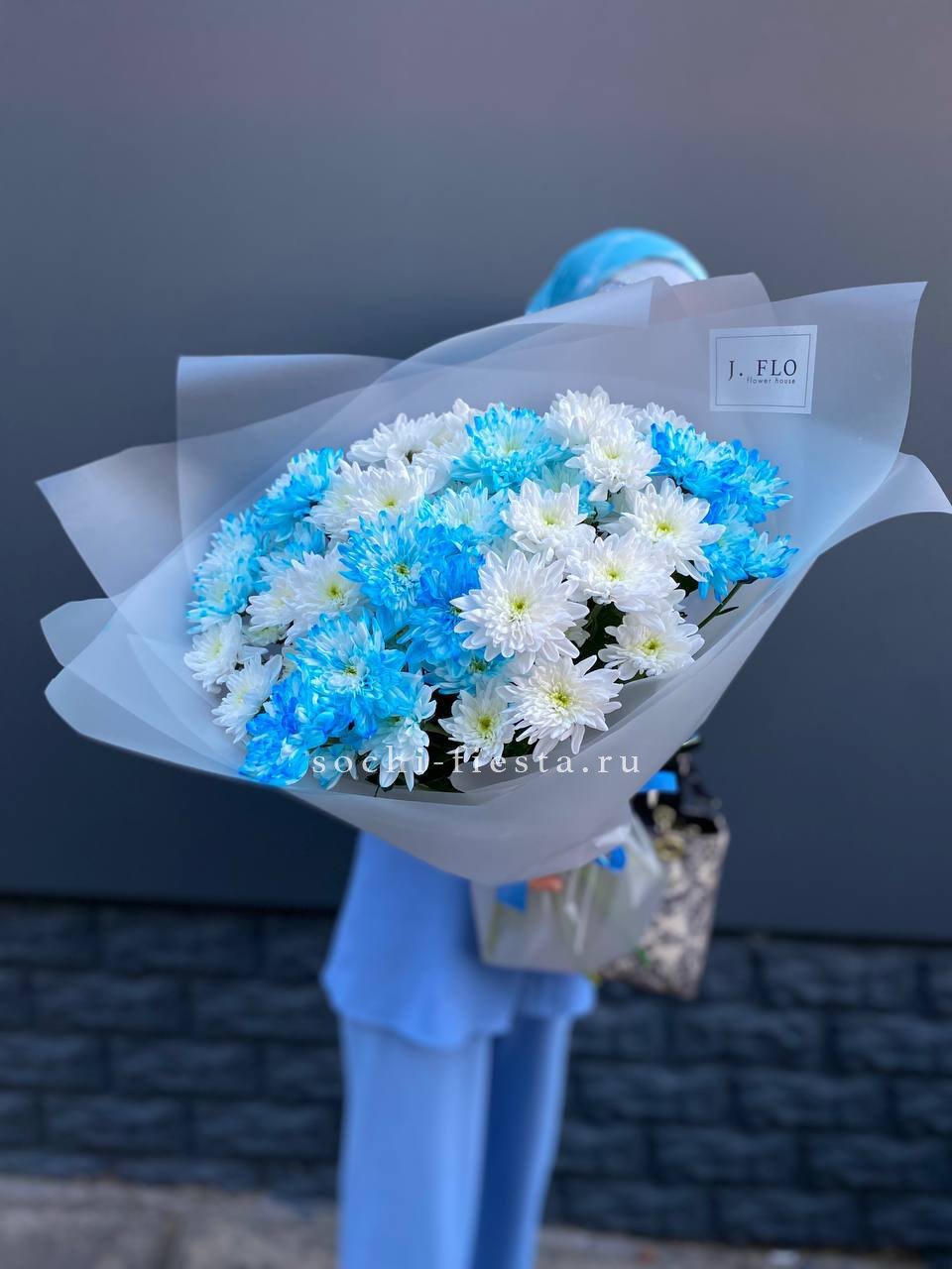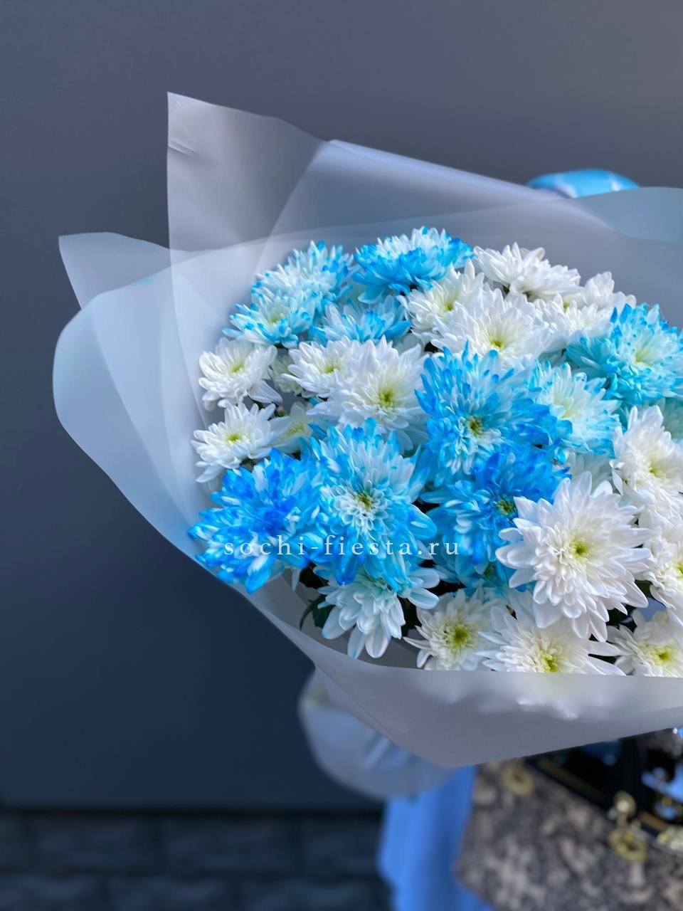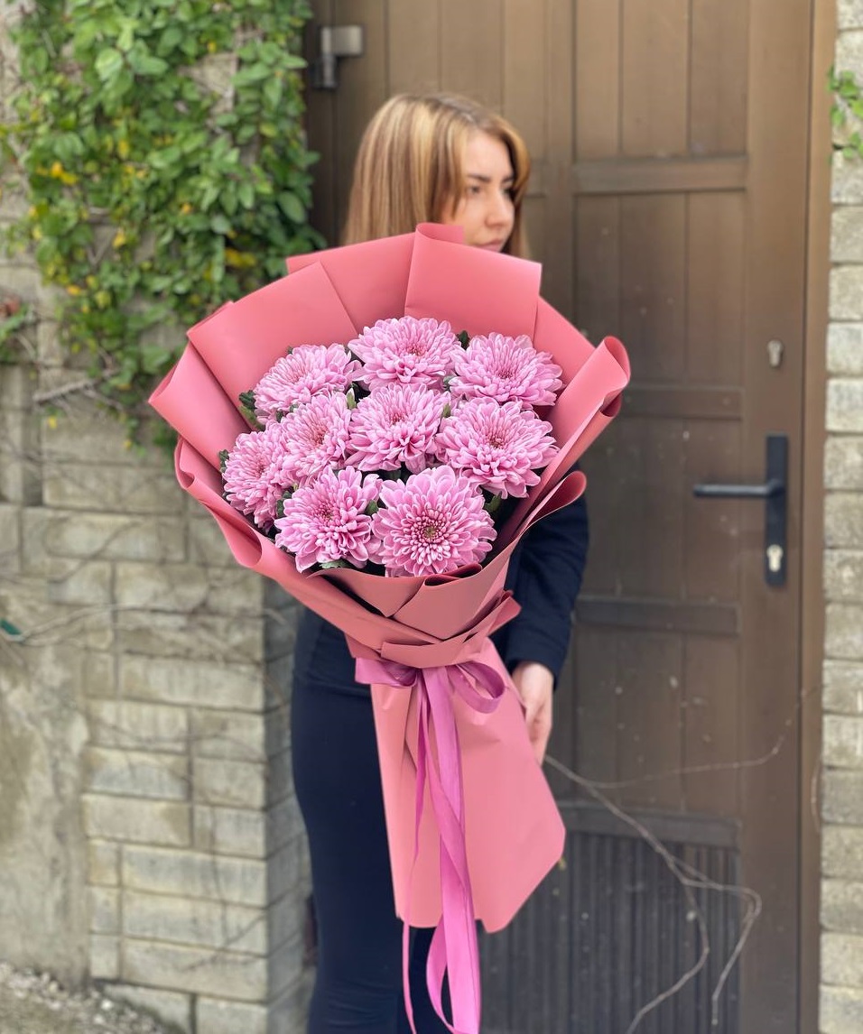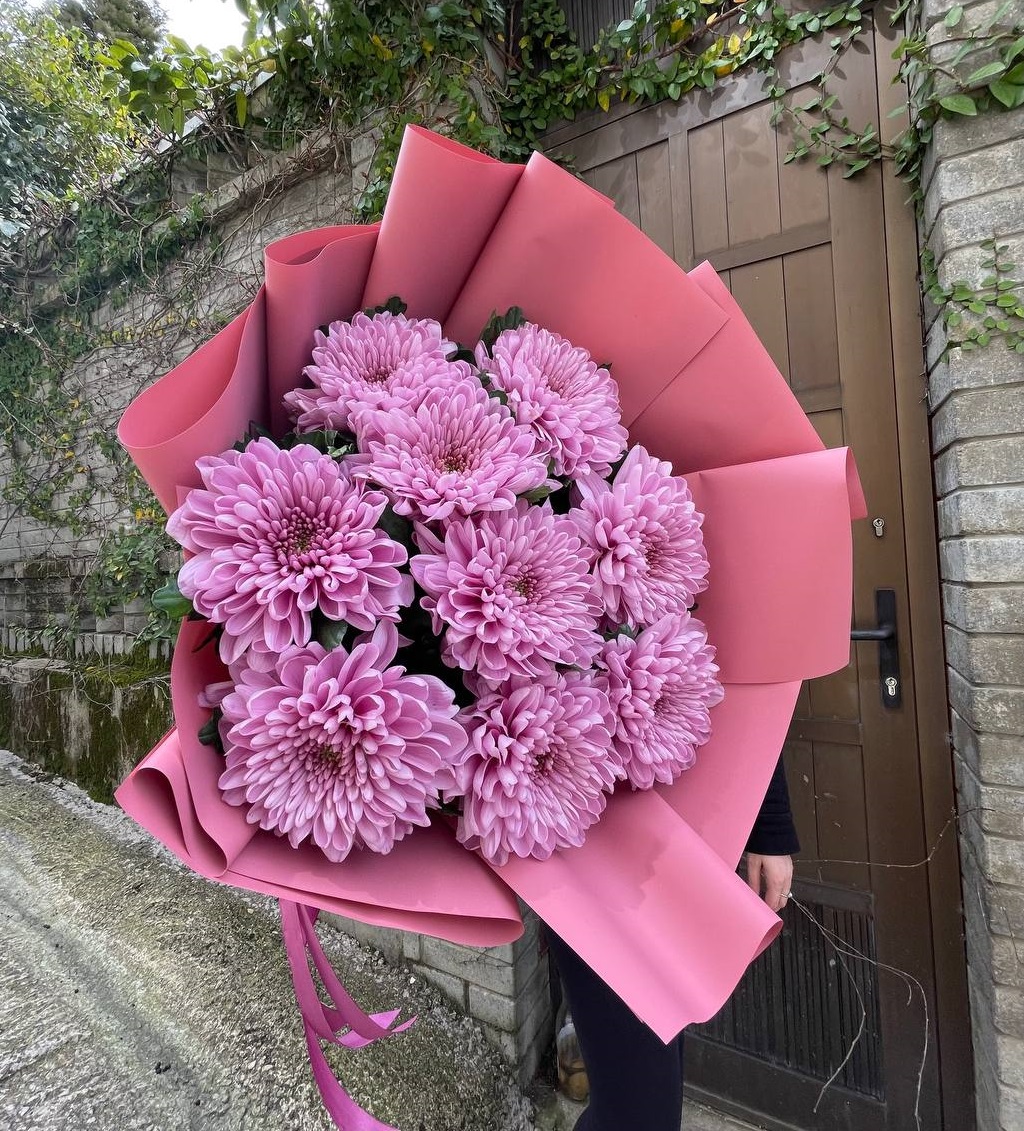 хризантема одноголовая - 39 шт., лента, дизайнерская упаковка.