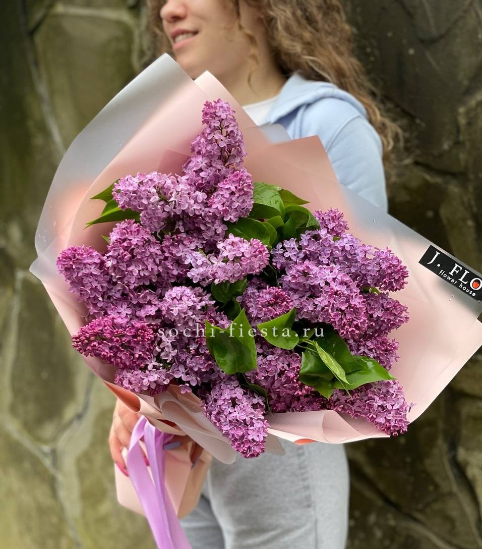 сирень - 7-9 веток, дизайнерское оформление, лента.