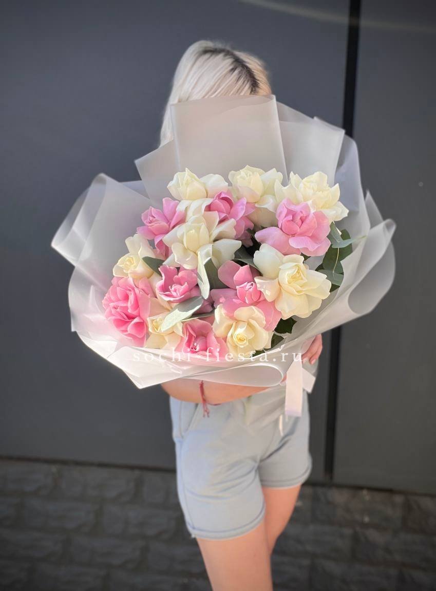 Букет в нежных светлых оттенках идеален для утонченных получательниц без повода, также для мамы и коллег!