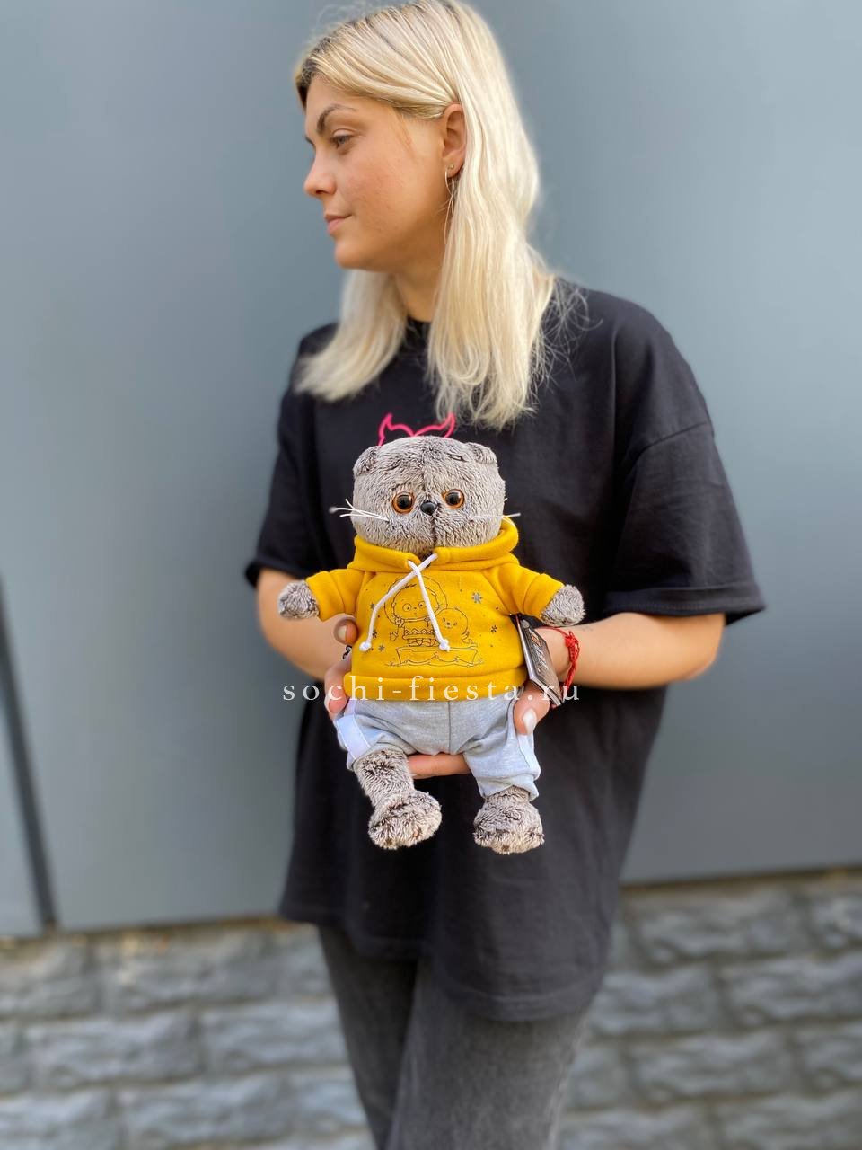 Кот Басик в текстильном худи выглядит так будто только что вернулся с прогулки. Бархатистая шёрстка и продуманные детали одежды добавляют характер. Сидит устойчиво и вписывается в любой интерьер.