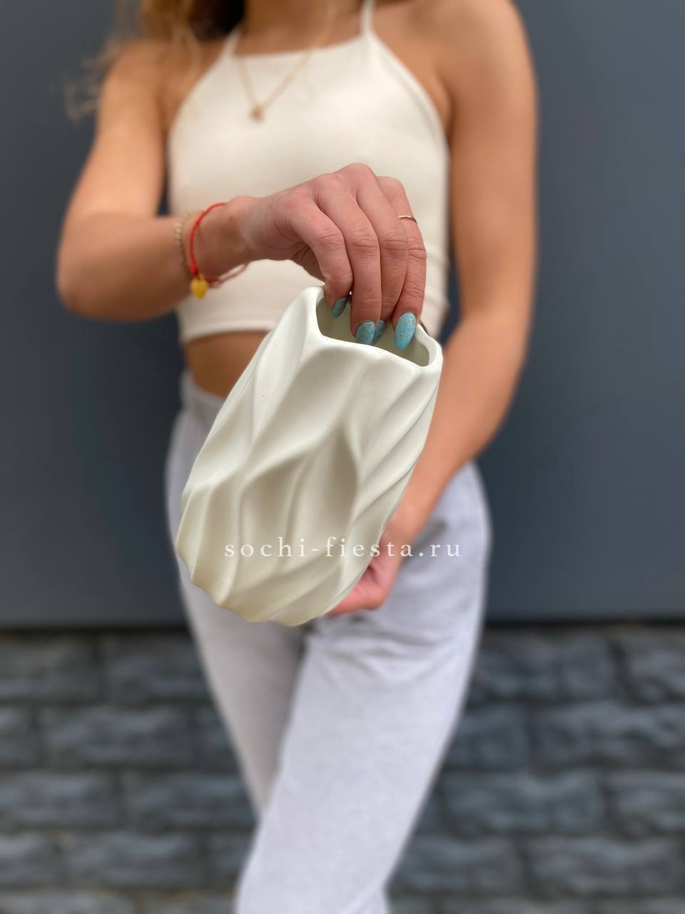 декоративная ваза- это изящное дополнение к любому интерьеру. Геометрический рисунок на белой керамике придает вазе современный и лаконичный вид, который гармонично впишется в любой дизайн. Высота 18 см. Ширина 12.5 см
