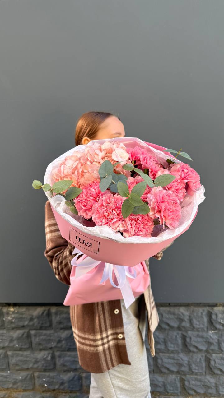 Этот авторский микс из пудровой гортензии и кружевных диантусов — идеальный подарок для тех, кто вдохновляет. Сочетание фактур и оттенков розового создает ощущение легкости и весеннего тепла. Букет, который невозможно выпустить из рук.