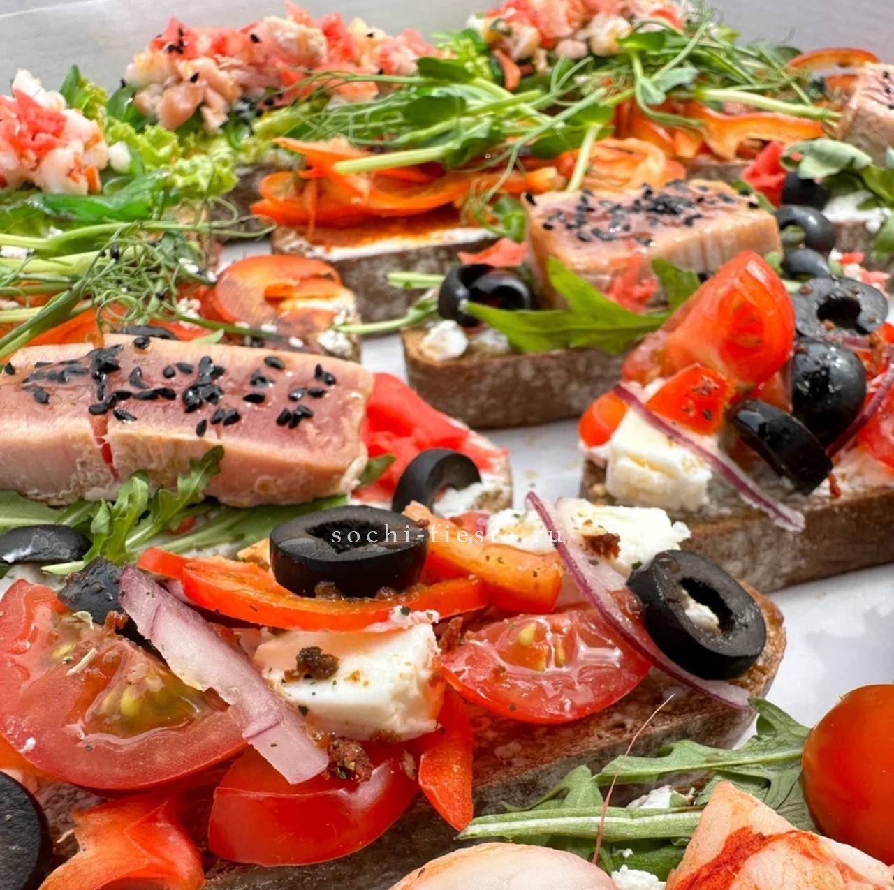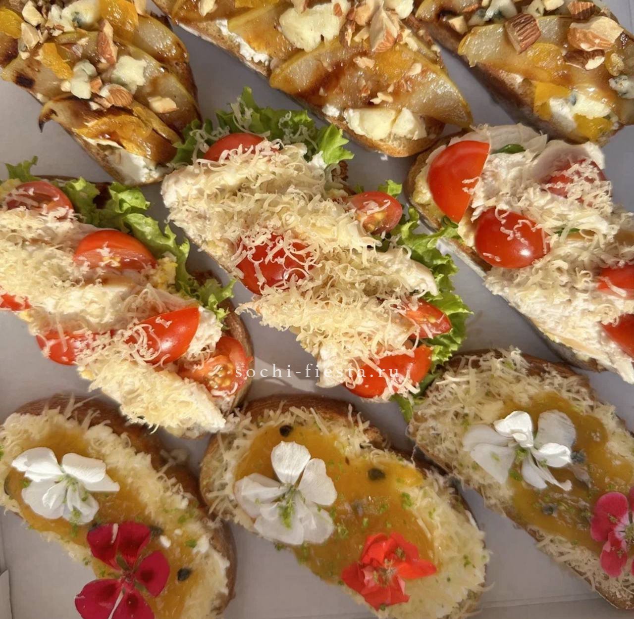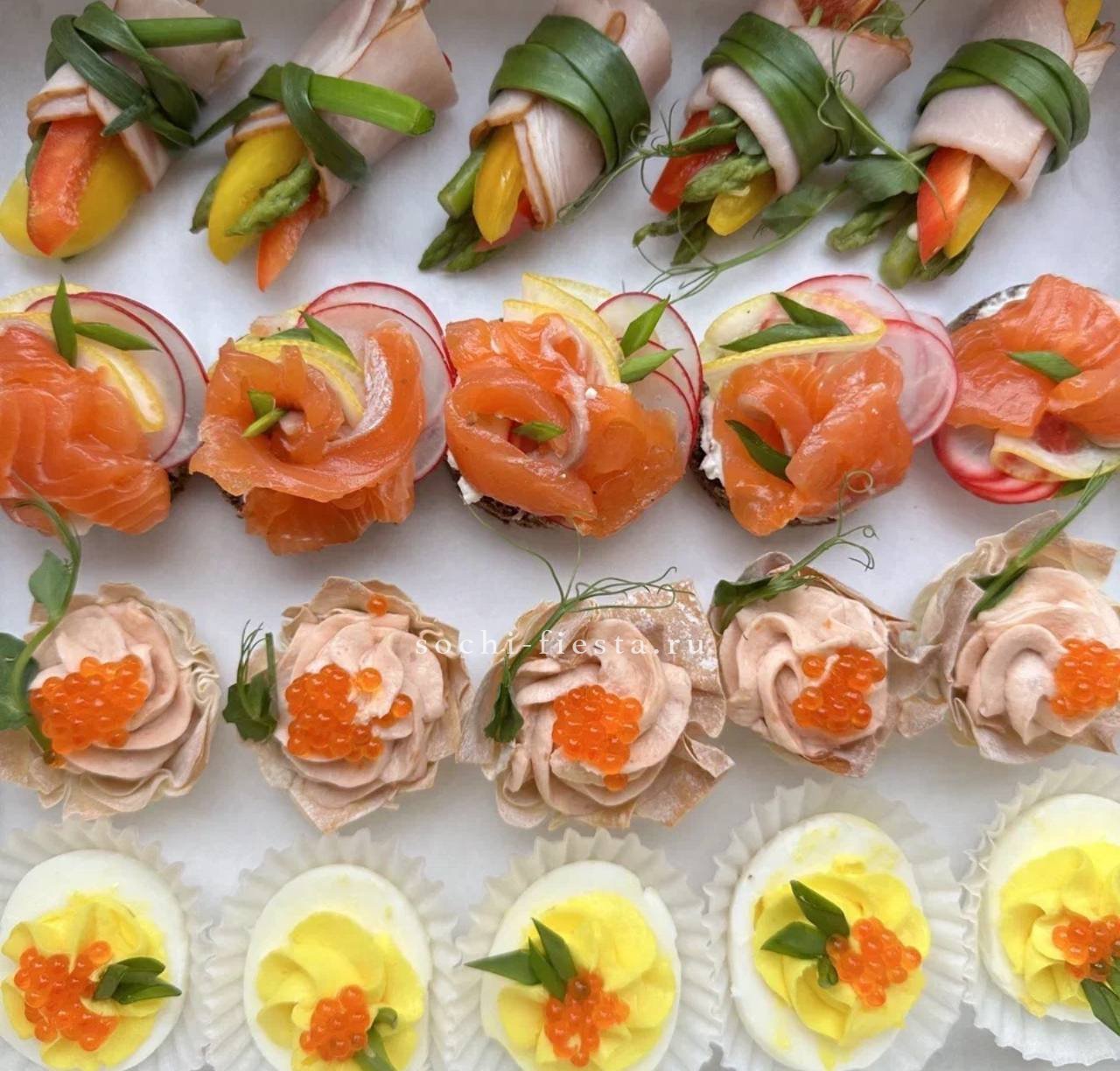 минибургер из свежевыпеченной булочки с кунжутом с куриной котлетой, сыром чеддер, соленым огурцом, свежим томатом, луком и салатом, заправка: авторский томатный соус- 14 шт. Картофельные шарики, подаются в стаканчиках- 4 стаканчика по 5 шт. Куриные нагетсы в кукурузной панировке, в стаканчиках- 4 стакана по 6 шт. Овощная корзинка. Фруктовая корзинка. Соусы красный и белый- 4 шт.