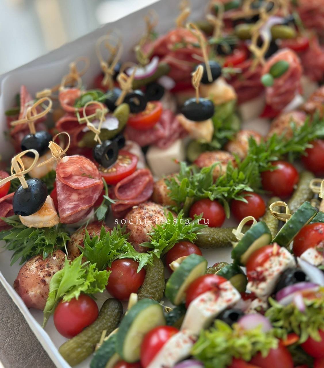 Пятнадцать брускет с разными начинками образуют яркую гастрономическую палитру. Греческие мотивы переплетаются с морскими акцентами, имбирный тунец дополняет свежесть рукколы и креветок.