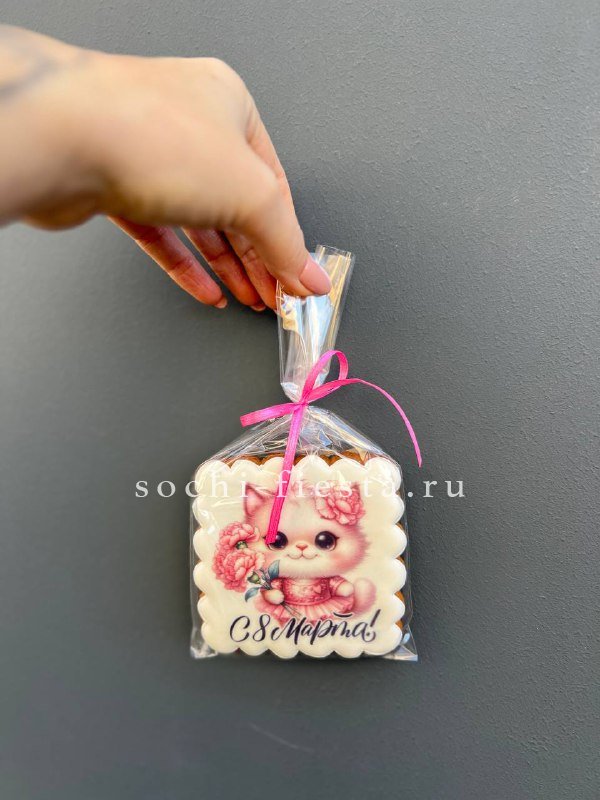 Имбирное печенье с праздничным декором в честь весеннего дня. Ароматная выпечка с авторской росписью дополнит любой подарок тёплой нотой и душевным вниманием.