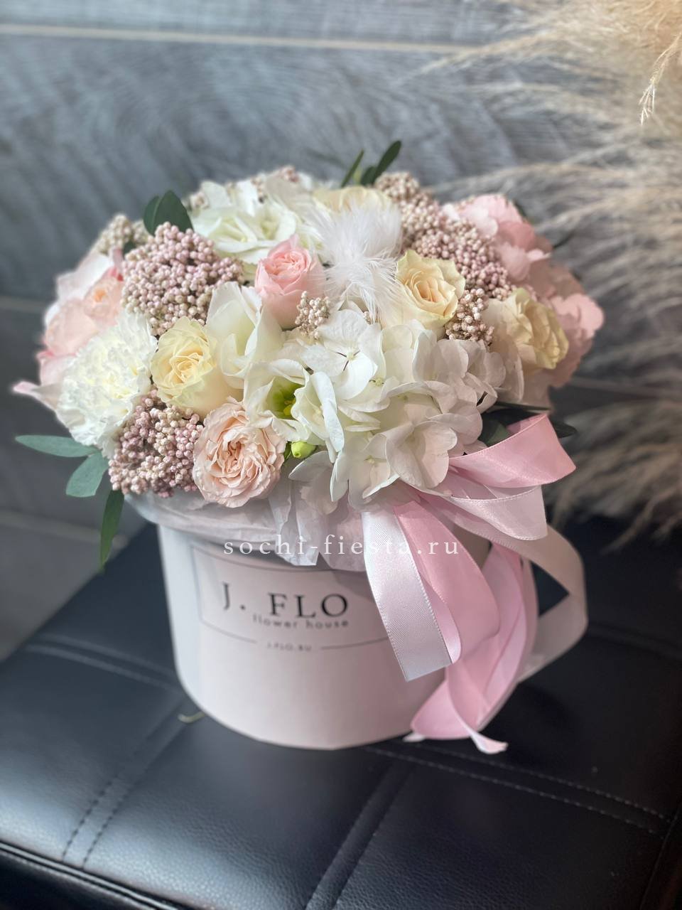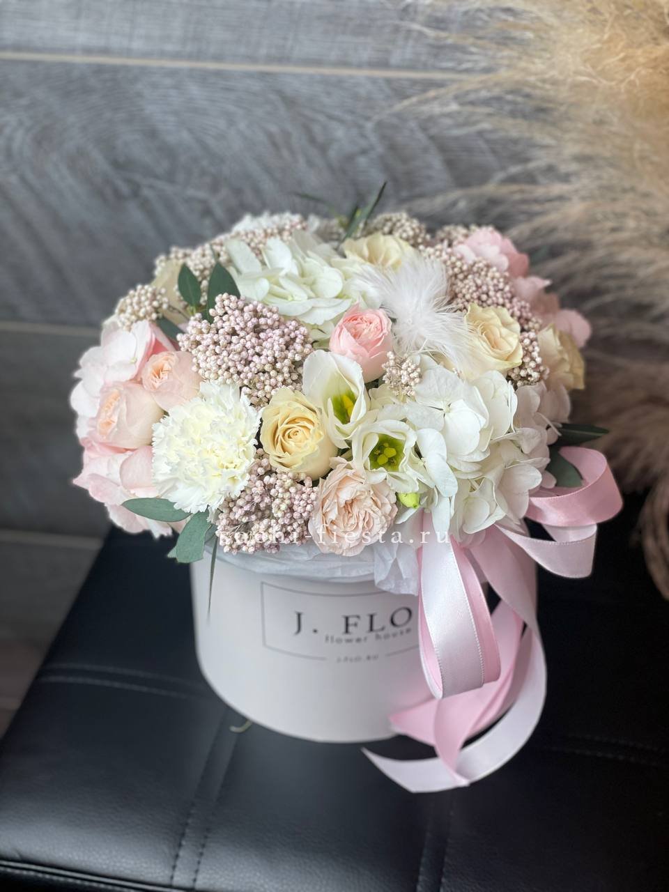 гортензия, пионовидные розы, эустома, эвкалипт, бокс 16.