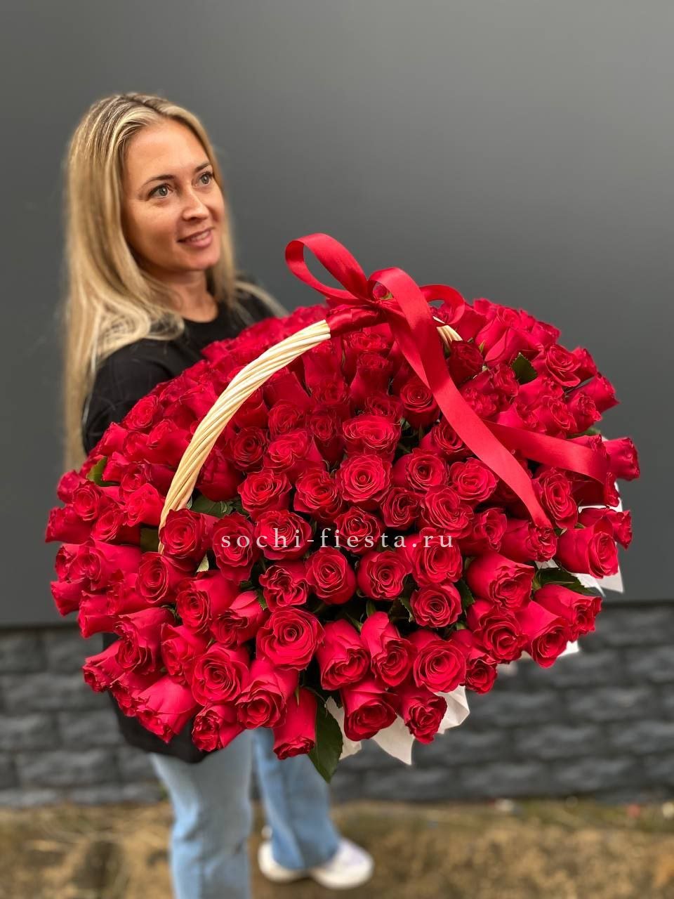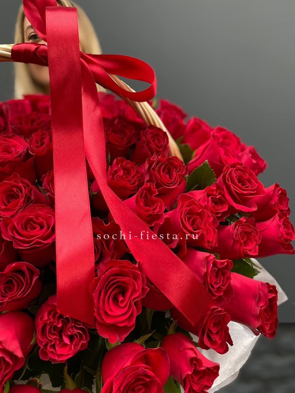 розы, эустома, гортензия, бомбастик, маттиола ( или аналог), эвкалипт, корзина.