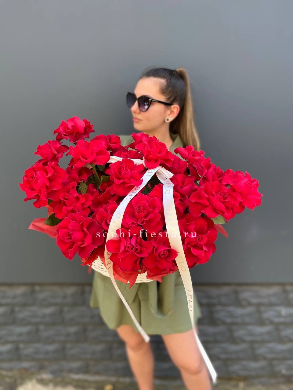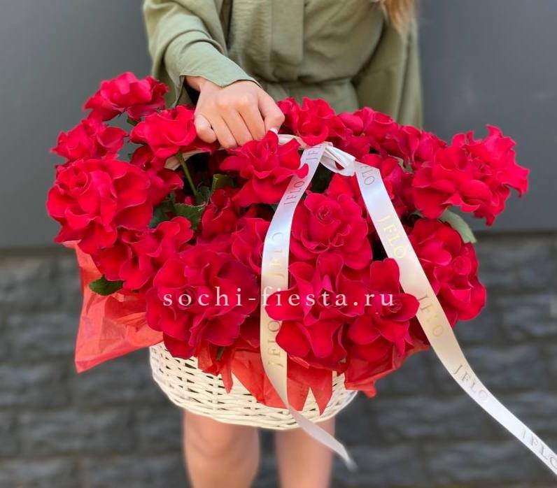 Для заказа товара "Красные французские розы в корзине" с доставкой в Калуге нажмите в корзину