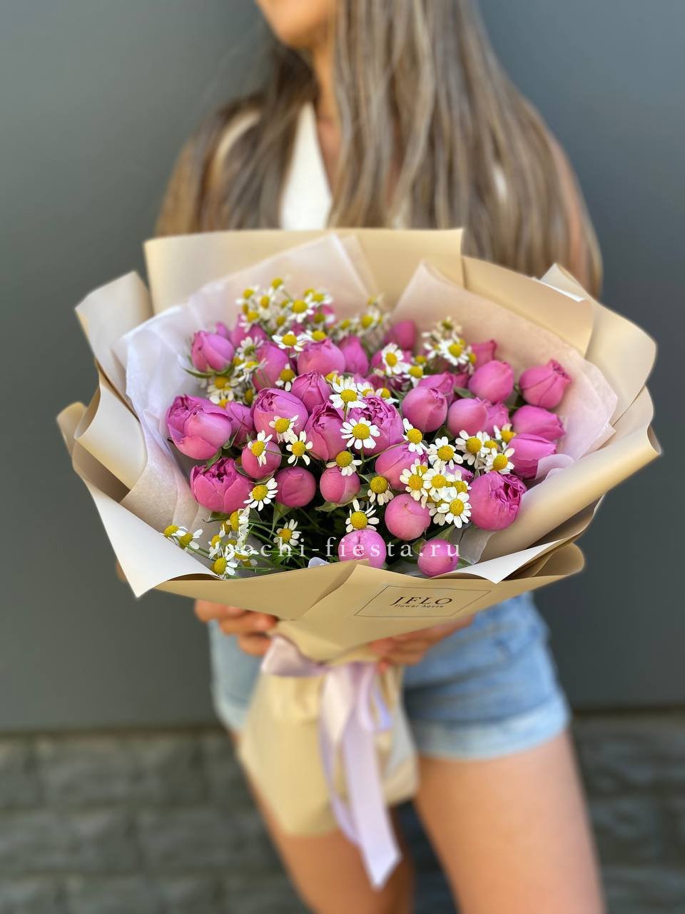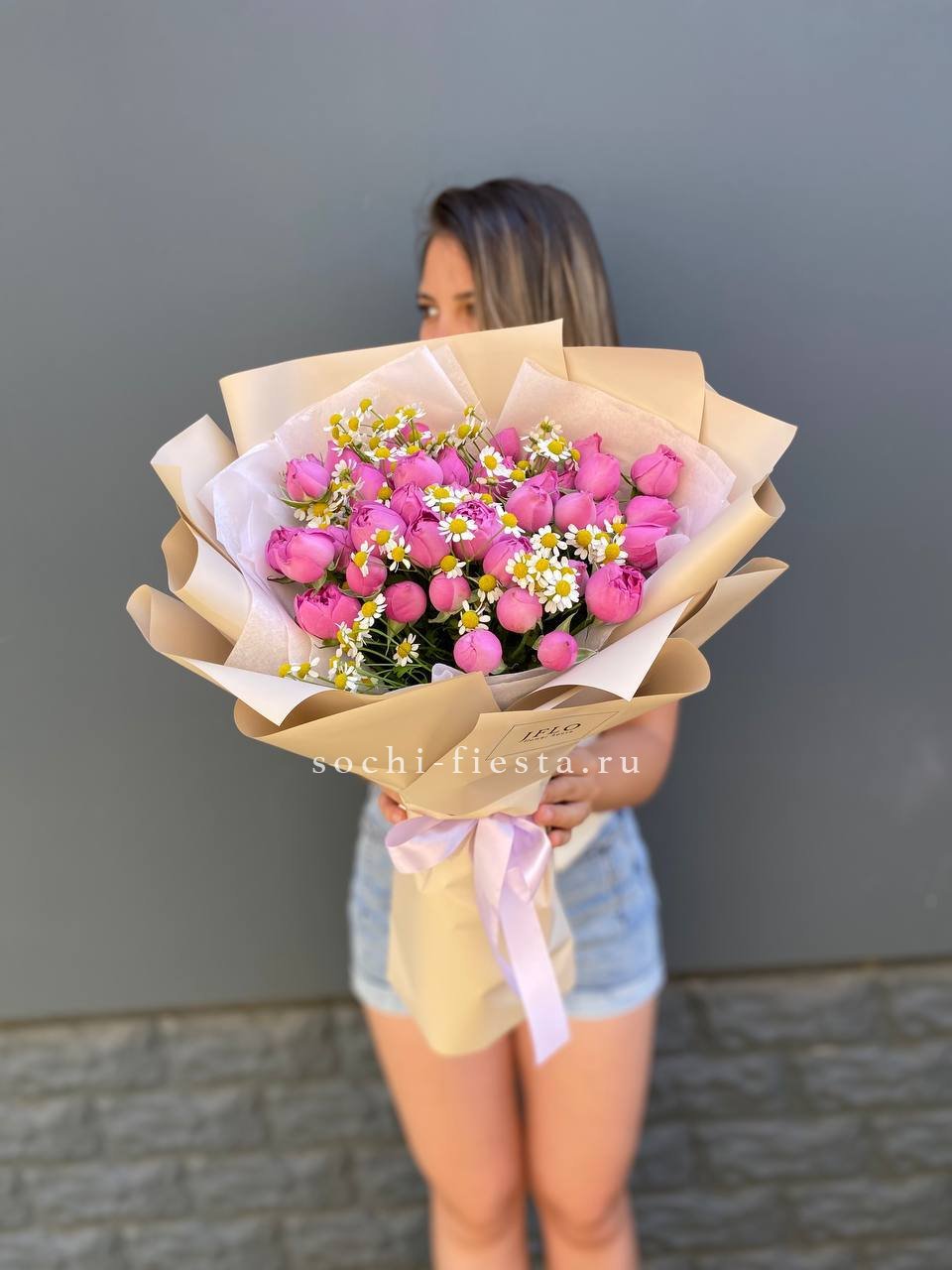 Мы работаем только со свежими цветами — букеты радуют от 7 до 14 дней и дольше при правильном уходе.